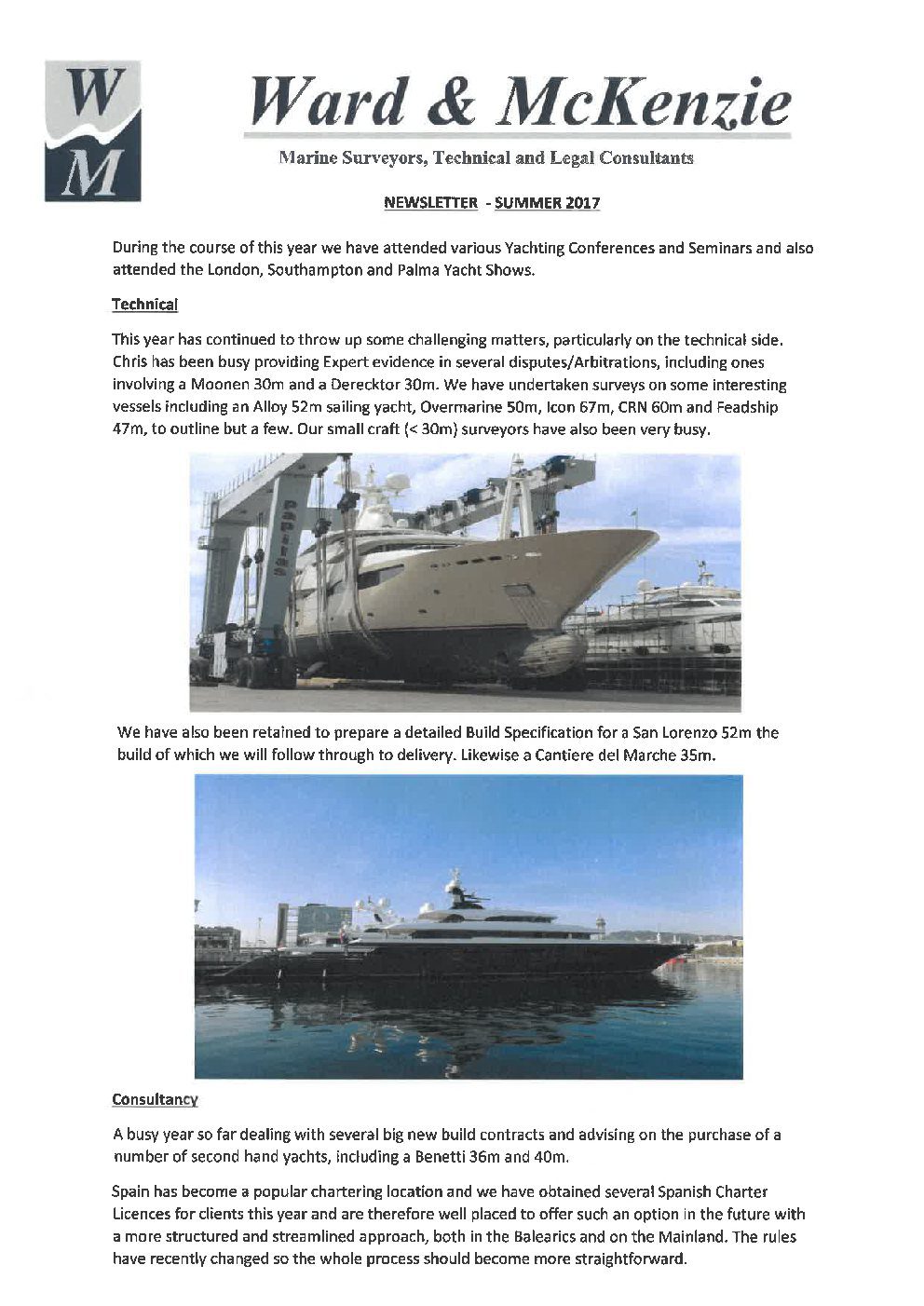 Download PDFDuring the course of this year we have attended various Yachting Conferences and Seminars and also attended the London, Southampton and Palma Yacht Shows.